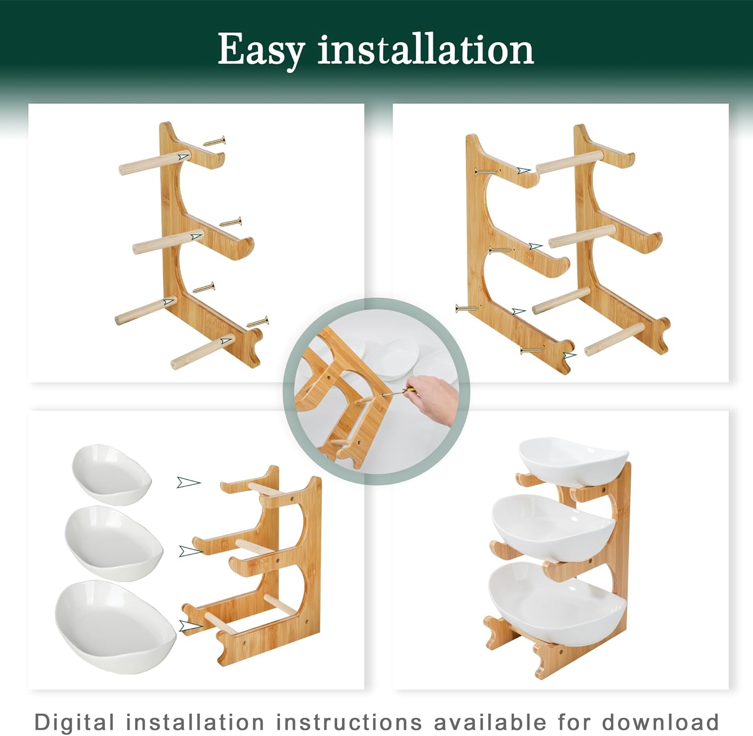 🔥Fruit tray storage rack | Ceramic bowl+bamboo rack | Dishwasher usable | FSC certified
