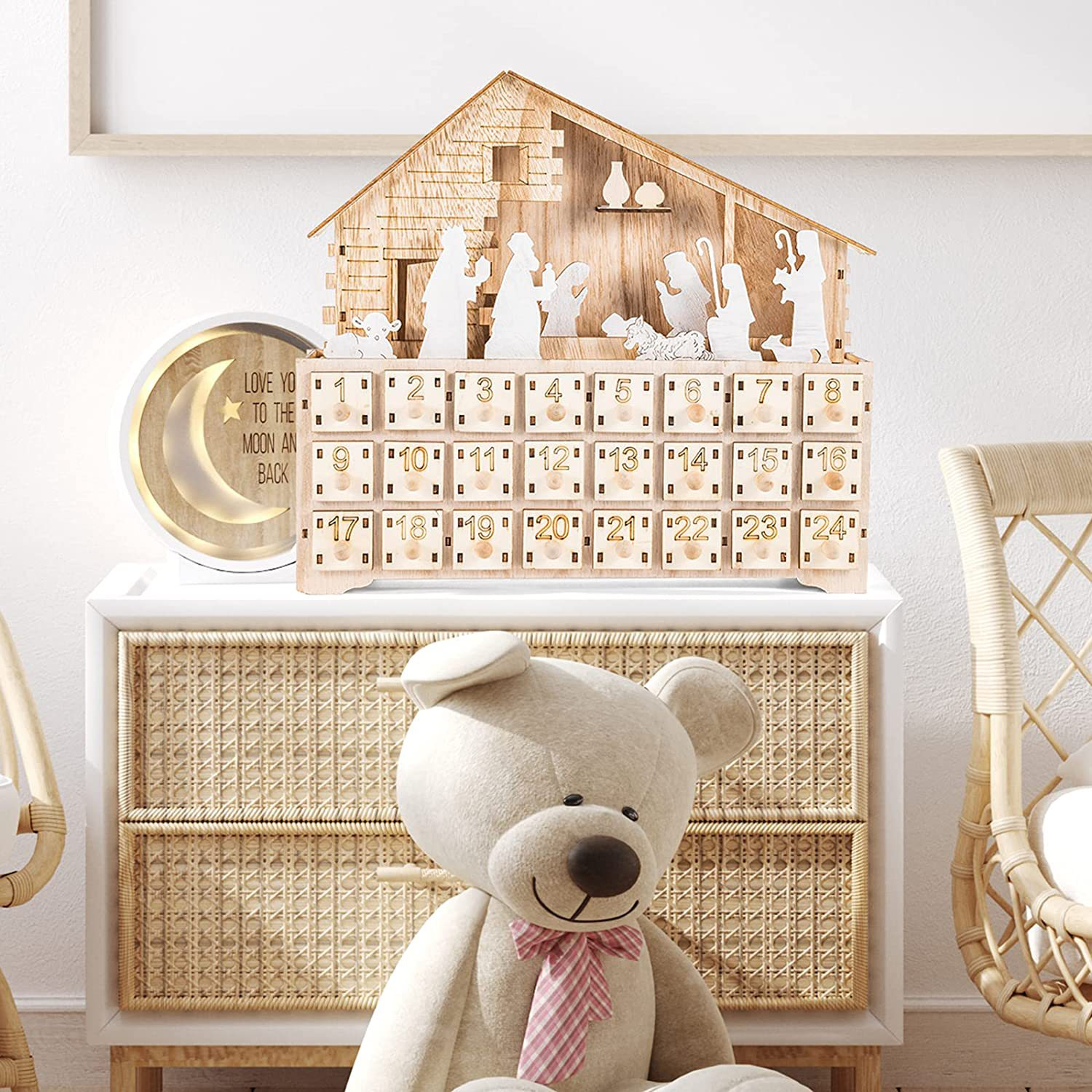 Imagine that every morning in December, a story of the birth of Jesus can be revealed - this wooden descent calendar transforms the 24 day wait into a heartfelt festive ceremony! Crafted from carefully selected warm and natural wood, it is lightweight yet sturdy and durable, perfectly blending rustic rural style with an eternal Christmas atmosphere. It is the ideal choice for creating warm and stylish holiday decorations.